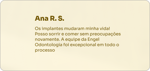 Os implantes dentários da Engel Odontologia são a solução definitiva para recuperar seu sorriso, sua confiança e sua capacidade de aproveitar todas as suas refeições favoritas!