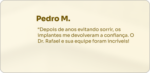 “Minha missão é proporcionar sorrisos perfeitos e saudáveis, respeitando a individualidade de cada paciente. Com o Implante, podemos oferecer um tratamento discreto, confortável e altamente eficaz.”